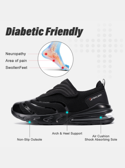 - Diabetes-Friendly Our seamless interior is meticulously crafted to be exceptionally smooth, preventing the rubbing and skin irritation common with sensitive, diabetes-prone feet. Enjoy every step in complete comfort.