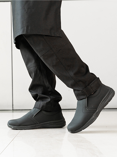 Redefine kitchen fashion. Slip-resistant shoes for style and safety. Double-sided elastic for secure stride.